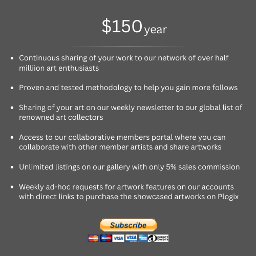 CONGRATULATIONS AGAIN FOR YOUR APPROVAL! IF YOU ARE VIEWING THIS LINK, YOU HAVE BEEN SELECTED BY OUR PARTNERS AND OTHER FELLOW MEMBERS TO JOIN OUR GALLERY AND TEAM. WE WILL WORK WITH YOU AND FOR YOU TO HELP YOUR ARTWORK RECEIVE THE ATTENTION IT DESERVES…